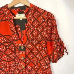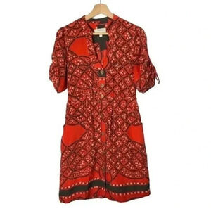 Anthropologie Moulinette Soeurs Maeshowe Red Silk Button Down Mini Dress 6
