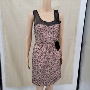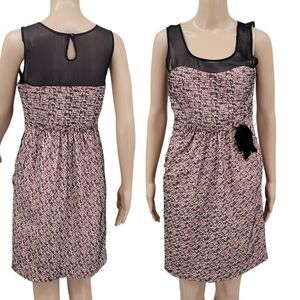 Anthropologie Moulinette Soeurs Pink with Black Velvet Pattern Cinched Dress