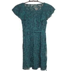 Anthropologie Moulinette Soeurs Ruffle Dress Size 2 Teal Green Pockets