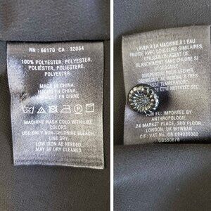 The garment is made of a combination of polyester, rayon, and spandex, and is machine washable for easy care.