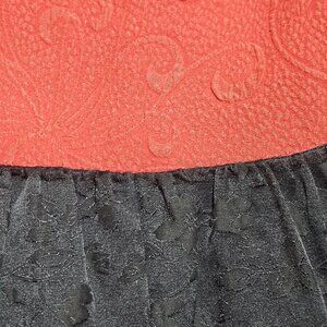 This elegant dress combines luxurious silk and jacquard textures with a sophisticated color block design. Ideal for formal settings or refined gatherings. Pair this with a sweater and you are court ready.