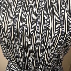 Step out in style with this elegant black and white striped dress. Perfect for any occasion, this dress offers a flattering fit and timeless design.
