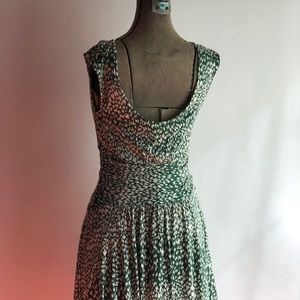 Easy and comfortable, this dress is very versatile and flattering - yet not too fussy. Fitted waist. Slight cowl neck. Lower back, yet bra straps will remain unrevealed.