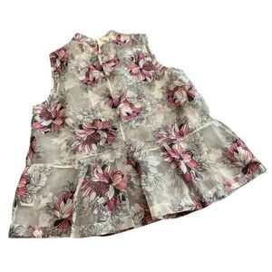 Stunning Anthropologie Moulinette Soears sheer peplum blouse. Cream sheer background with pink and salmon flowers. Size 14, 22” X 23” (at peplum) X 27”. Excellent condition.