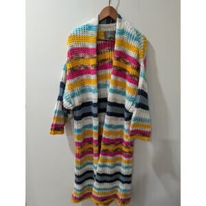Anthropologie Multi Color Stripe Chunky Duster Sweater