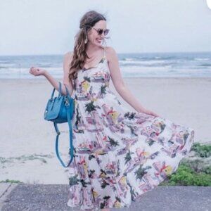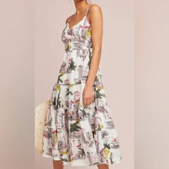 Chic midi dress with vibrant print. Features adjustable straps. Perfect for any occasion.