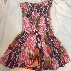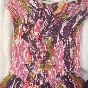 Anthropologie top with vibrant pink, purple, and white hues. Features a unique textured design. Ideal for a stylish statement. PreOwned