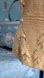Elegant mustard cardigan with floral button details. Features short sleeves and textured knit design.