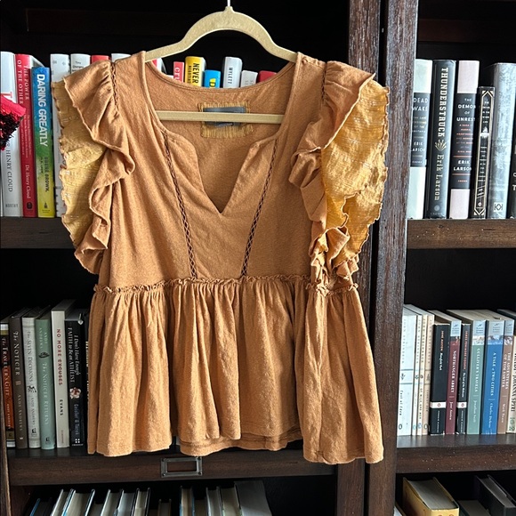 Anthropologie Mustard Ruffle Blouse