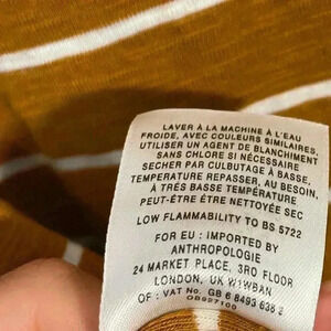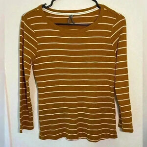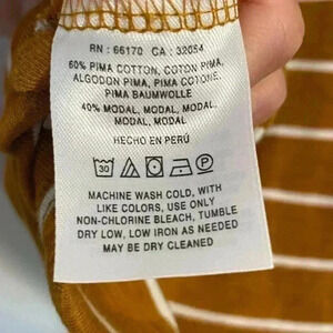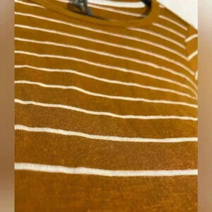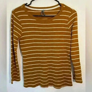 Anthropologie Mustard Yellow and White Horizontal Stripes Quarter Sleeve T Sz XS