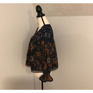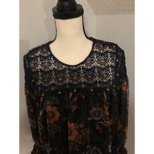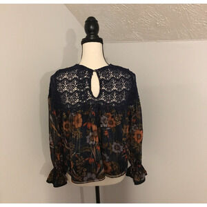 Anthropologie Mynah Reynu Taandon Cristy Crochet Floral Navy Blouse - Size Small
