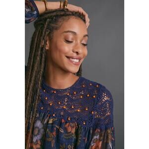 Anthropologie Mynahs Reynu Taandon Cristy Crotchet Beaded Blouse Boho Peasant XS