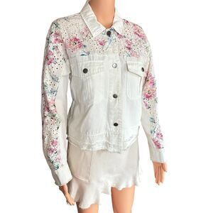 Anthropologie Mystree Size S White Embroidered Denim Jacket Western Cottage
