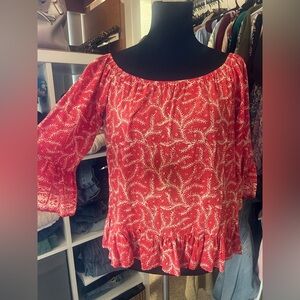 Anthropologie NAT by Natalie Martin Coral Print Ruffle Top XS