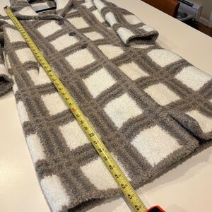 Anthropologie NVLT Crean Tan Plaid Long Teddy Coat Size S