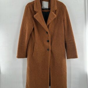 Anthropologie NVLT Long Flat Bouclé Teddy Overcoat Brown Medium