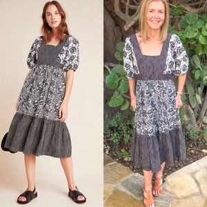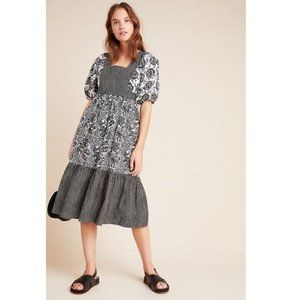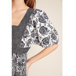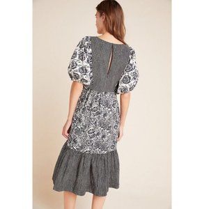 Adrienne Flounced Midi Dress by Blooming Print in Black & White. Size 2.