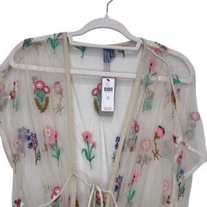 Anthropologie NWT BL^NK Sheer Embroidered Overlay Duster Cream Tan Pink One Size
