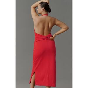 Brand new with tags! Stunning Anthropologie halter midi dress in a bold Cherry Tomato orange-red. Designed with a sleek, body-skimming fit, open back, and side slit for a flattering, feminine silhouette.