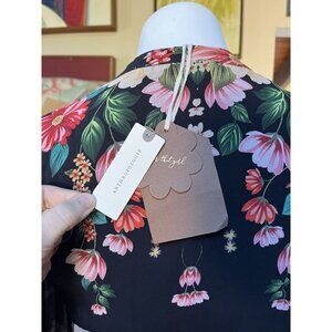 This lavish Anthropologie maxi dress exudes a retro 1970s charm with its vibrant floral design and graceful silhouette. The Forever That Girl "Vivienne dress" is a testament to timeless elegance, featuring delicate puff sleeves and a flattering V-neckline. The flowing fabric drapes beautifully, evoking the picturesque essence of a granny or prairie dress. Its intricate floral motifs are reminiscent of a nostalgic bygone era, offering an enchanting style statement. Size XS
