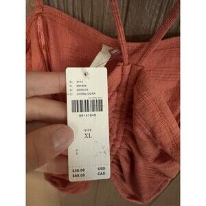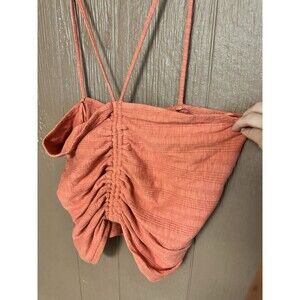 Anthropologie NWT Pilcro Ruched Ribbed Halter Top Coral Size XL Beach Boho Retro