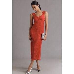 This stunning Anthropologie sleeveless midi dress is a head-turner in a rich pink hue with beautiful satin pleating and a soft, flattering drape. Crafted with attention to detail, it features wide straps, a fitted bodice, and a zip-up back for a sleek silhouette.