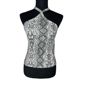Anthropologie NWT Snakeskin Print Knit Tank Top S Grey & White Artsy Casual