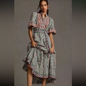 Anthropologie NWT Sue Sartor Short-Sleeve Printed Midi Dress