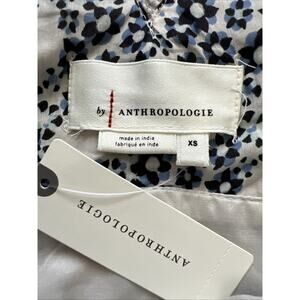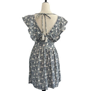 Anthropologie NWT Tunic Mini Dress Womens XS Blue Motif V-Neck Plunge Tassel Tie