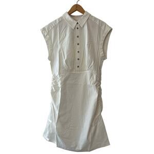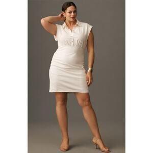 Anthropologie NWT White Linen Blend Ruched Collared Mini Dress 1X