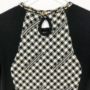 Nanette Lepore Grand Black Merino Wool Dress With Stunning Flat Metal Circle Details In Silver And Gold. The Sweater Dress Is Amazingly Soft In Cream And Black. Short Sleeves. Tailored Around The Waist. Rare Piece. Keyhole In Back Neckline Closure.