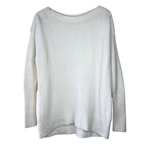 Anthropologie Naomi Sweater Merino Wool Blend White Pullover Boat Neck SMALL