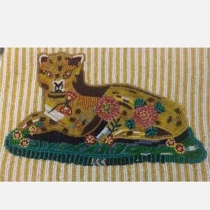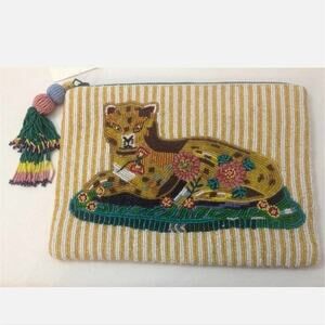 Anthropologie Nathalie Lete Leopard Beaded Embroidered Pouch Clutch Purse New!!
