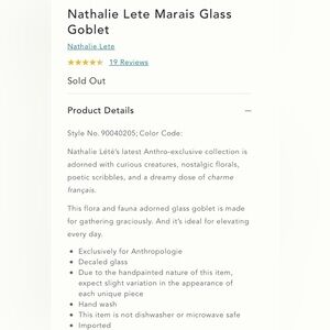🆕 Anthropologie Nathalie Lete Marais Goblet SOLD OUT