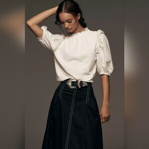 Anthropologie Nation Los Angeles Roya High Neck Cream Blouse Size XL