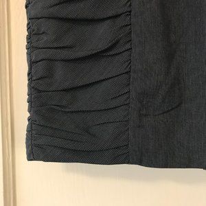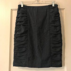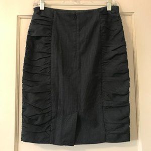 Elegant pencil skirt with ruched sides for a feminine silhouette. Lined. Back slit. Versatile enough to go from office to cocktails and an evening out!