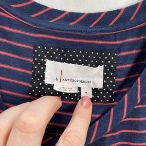 Anthropologie Top Navy Blue &Orange Striped Short Sleeve Back Ruffle Shirt Size Medium