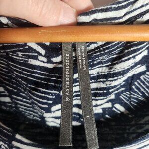 Anthropologie Navy Blue & White Smocked Bodice Tunic Top Sleeveless Sz Large