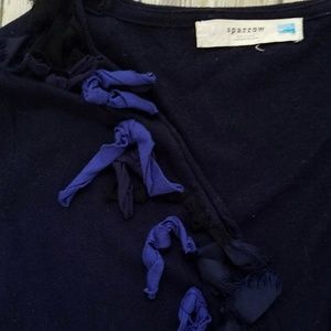 Anthropologie Navy Sparrow Ribbons and Bows Cardi