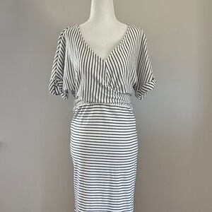 Anthropologie Navy Stripe V Neck Tie Dress