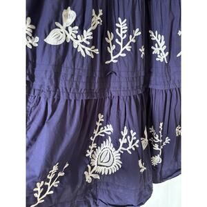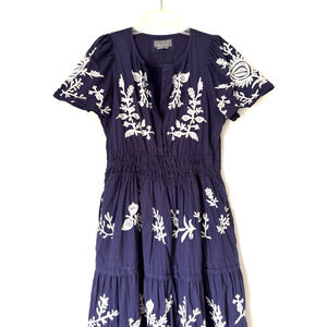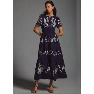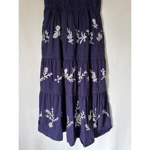 Elegant navy maxi dress with white floral embroidery. Short sleeves. Perfect for any occasion - wedding, holidays, or a special event.