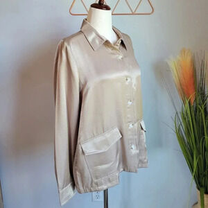 Anthropologie, New, Current Air Clemence Gold Shimmer Shirt Jacket Shacket, Size Medium