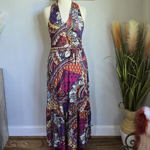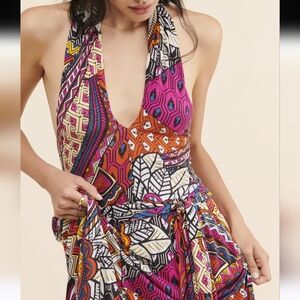Anthropologie New Maeve Cynthia Pink Boho Print Maxi Halter Sun Dress SZ Small