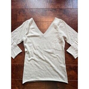 Anthropologie New Scotland 100% Cashmere Deep V Neck Cream Sweater Small