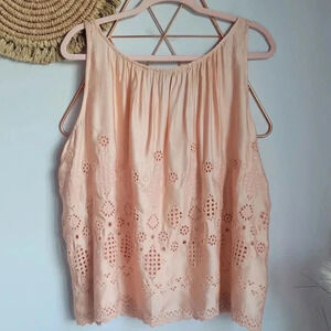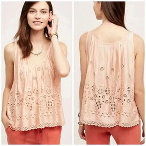 Anthropologie, New Vanessa Virginia Peach Sadie Swing Eyelet Tank Top Size 12