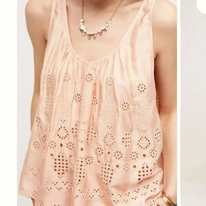Anthropologie, New Vanessa Virginia Peach Sadie Silky Swing Eyelet Tank Top Blouse, Size 12