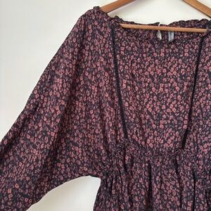Anthropologie Nichola Peplum Blouse Medium Peasant Black Brown Floral