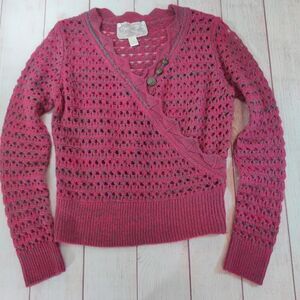 Anthropologie Nick & Mo crochet faux wrap V-neck sweater sz S