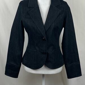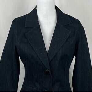 Anthropologie Nicole Miller Dark Wash With Multi Colored Specks Jean Cropped Blazer Jacket NWT