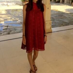 Anthropologie Niki Mahajan Sleeveless Embroidered Red Pink Lace High Neck Dress